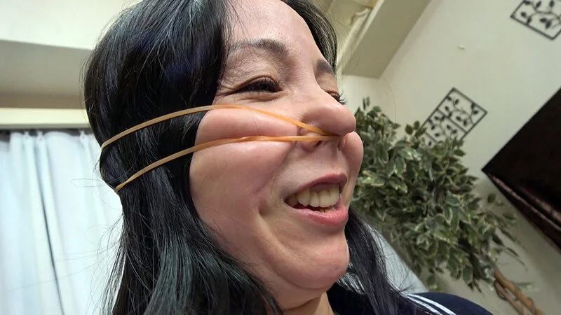 普段は義母やNTR作品ばかりと笑う美熟女が本作では人生初の鼻フック姿を披露。